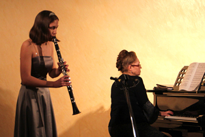 12 марта на сцене концертного зала «Классика» выступили студенты Ивановского музыкального колледжа Екатерина Поротникова и Иван Колбашов. Молодых музыкантов представляла ведущая вечера, руководитель Ивановского представительства российской «Ассоциации классического наследия» Жанна Ярославцева. Выступления Екатерины и Ивана не раз проходили на сцене зала «Классика». Одаренные молодые музыканты запомнились ивановскому зрителю талантливым исполнением музыкальных произведений. Екатерина Поротникова учится в музыкальном колледже по классу кларнета у заслуженного работника культуры В. Нестерова. С первых лет обучения Катя активно участвует и побеждает в различных престижных международных и всероссийских конкурсах, среди которых Всероссийский конкурс исполнителей на духовых и ударных инструментах «Серебряные трубы» им. В. Блажевича (гран-при), Международный фестиваль «Звездная гавань» (лауреат первой степени), международный телевизионный фестиваль «Щелкунчик» (3-я премия). В этом году Катя заканчивает обучение в музыкальном колледже, ей предстоит поступление в Московскую консерваторию. Зрители пожелали ей успешно сдать экзамены и продолжить учебу в этом учебном заведении. Произведения в исполнении молодой кларнетистки зрители слушали в первом отделении концерта. Красивым, насыщенным звучанием отличались сыгранные Екатериной Соната для кларнета и фортепиано до-мажор Ф. Пуленка и «Кларибель» Э. Боцца, а два танго А. Пьяцоллы замечательно передали чарующий колорит аргентинского танца. Партию фортепиано исполняла мама Екатерины - концертмейстер Александра Поротникова. Во втором отделении концерта выступил молодой пианист Иван Колбашов. Студент музыкального колледжа учится в классе заслуженного работника культуры Н.П. Свириденко, а также занимается композицией. В 2012 году стал дипломантом Всероссийского конкурса молодых композиторов. В исполнении Ивана Колбашова прозвучали «Картинки с выставки» - цикл фортепианных пьес М.П. Мусоргского. Музыкальная прогулка по воображаемой выставке выразительно была представлена молодым пианистом: удалось передать все многообразие настроения картинок - от протяжной, меланхоличной мелодии «Старого замка» до веселого комичного танца невылупившихся птенцов. Выступление молодых музыкантов тепло и одобрительно принимал зал. По окончании концерта зрители стоя рукоплескали, а слегка смущенные Иван и Екатерина принимали цветы и поздравления. А. Турканова | |||
