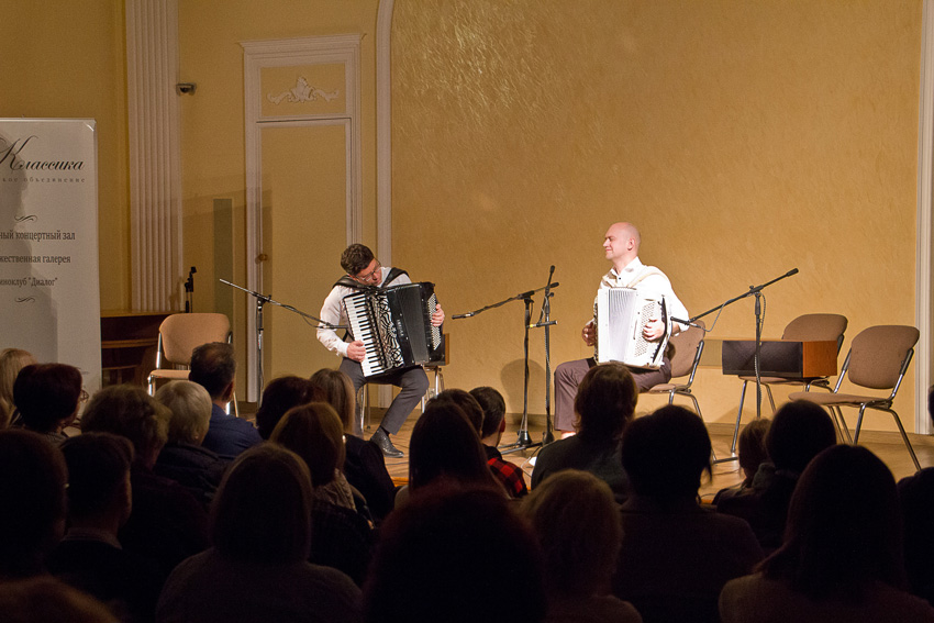 Вселенная гитары![]() Гитара многоликая и многогранная. Ее возможности не раз демонстрировали талантливые музыканты. На этот раз нам представили целую Вселенную гитары, а центром Вселенной стала сцена «Классики». далее ... | Вячеслав Фёдоров: признание в любви к родному краю![]() В художественной галерее «Классика» проходит выставка выдающегося мастера живописи, заслуженного художника РСФСР Вячеслава Фёдорова. Мастер лирического пейзажа, как никто другой, он мог рассказать о красоте природы, неба, земли, выразить глубокую любовь к своей Родине. далее ... | Баян и аккордеон: многоликие и чарующие![]() Баян и аккордеон. Эти два инструмента привычнее видеть в ансамблях и оркестрах, чем в сольном исполнении. Да и исполнителей можно сосчитать по пальцам. Нам посчастливилось! 14 ноября в «Классике» с огромным успехом прошел концерт двух музыкантов – аккордеониста Сергея Осокина и баяниста Эдуарда Аханова. далее ... | ||